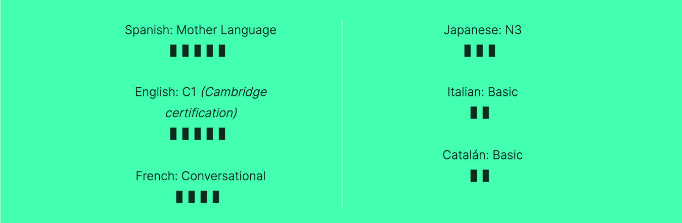 — (2019 - 2020) Master International in Marketing & Sales in EAE business school (with double qualification of the university Rey Juan Carlos) and a Minor of Project Management.